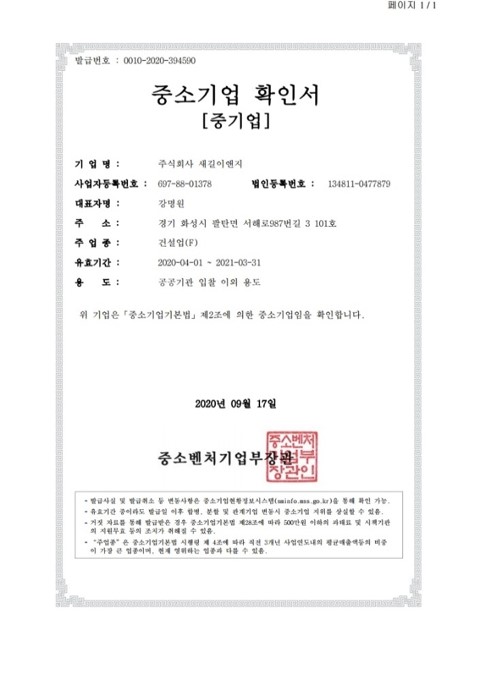 중소기업확인서 페이지 정보 작성자최고관리자 댓글 0건 조회 82회 작성일 21-07-08 14:14 본문 목록 이전글이전글제목입니다. 17.07.14 다음글다음글제목입니다. 17.07.14 댓글목록 댓글목록 등록된 댓글이 없습니다.